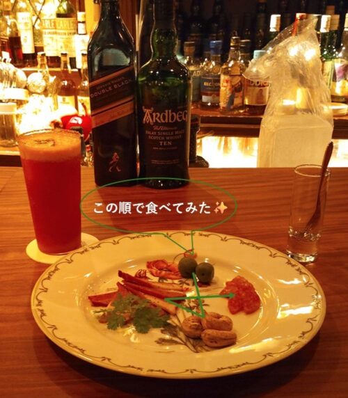 「皿の旅」とは、俺が持っているボタニカルアートの皿をBarに持ち込み、酒と共にフードを楽しむという企画?(笑)。